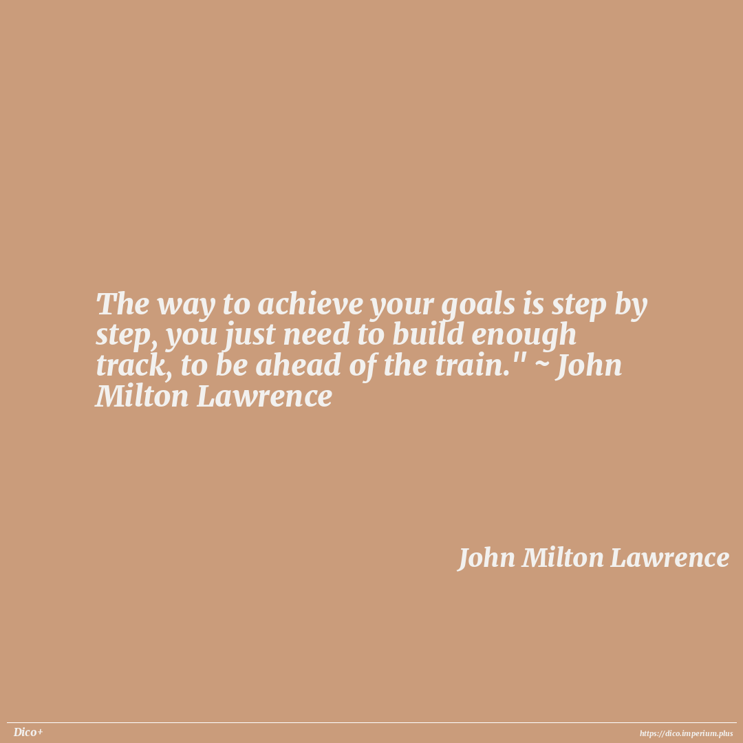 The way to achieve your goals is step by step, you just need to build enough track, to be ahead of the train." ~ John Milton Lawrence