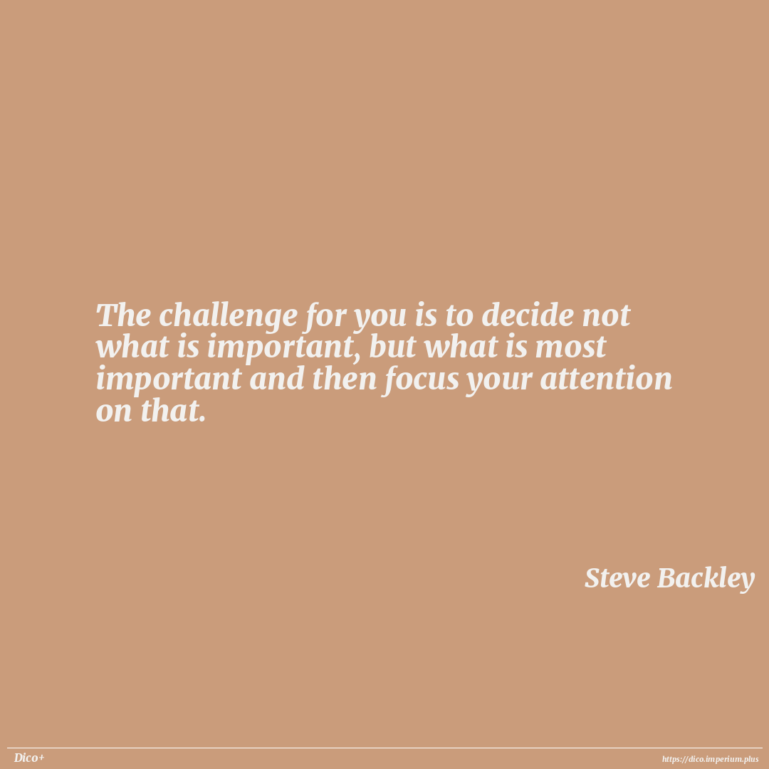 The challenge for you is to decide not what is important, but what is most important and then focus your attention on that.