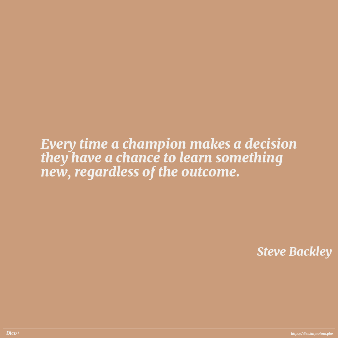 Every time a champion makes a decision they have a chance to learn something new, regardless of the outcome.