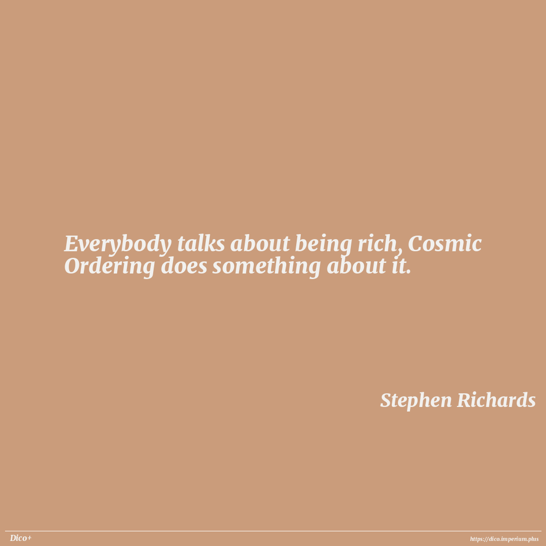 Everybody talks about being rich, Cosmic Ordering does something about it.