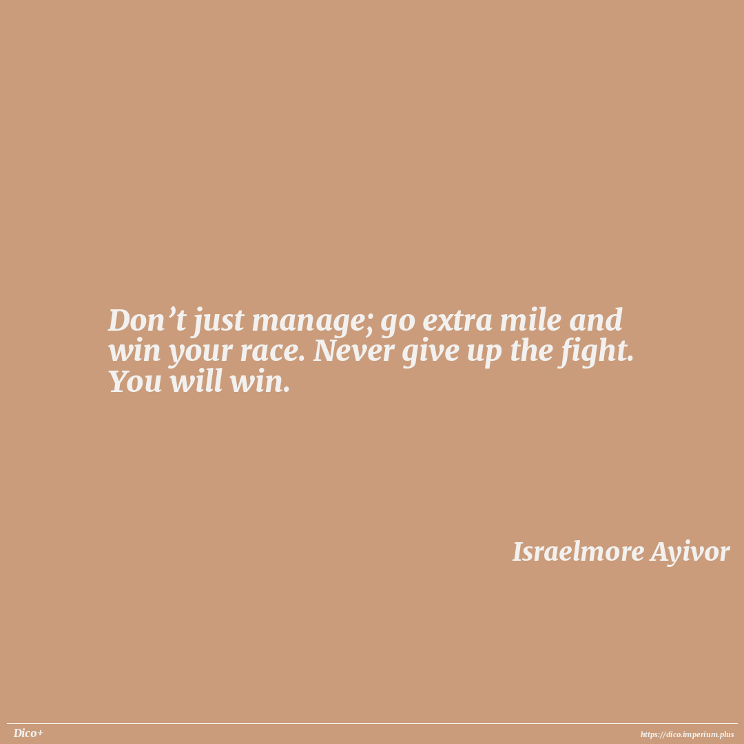 Don’t just manage; go extra mile and win your race. Never give up the fight. You will win.