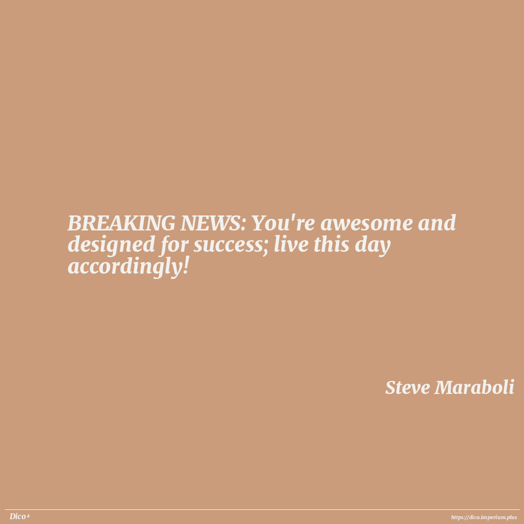 BREAKING NEWS: You're awesome and designed for success; live this day accordingly!
