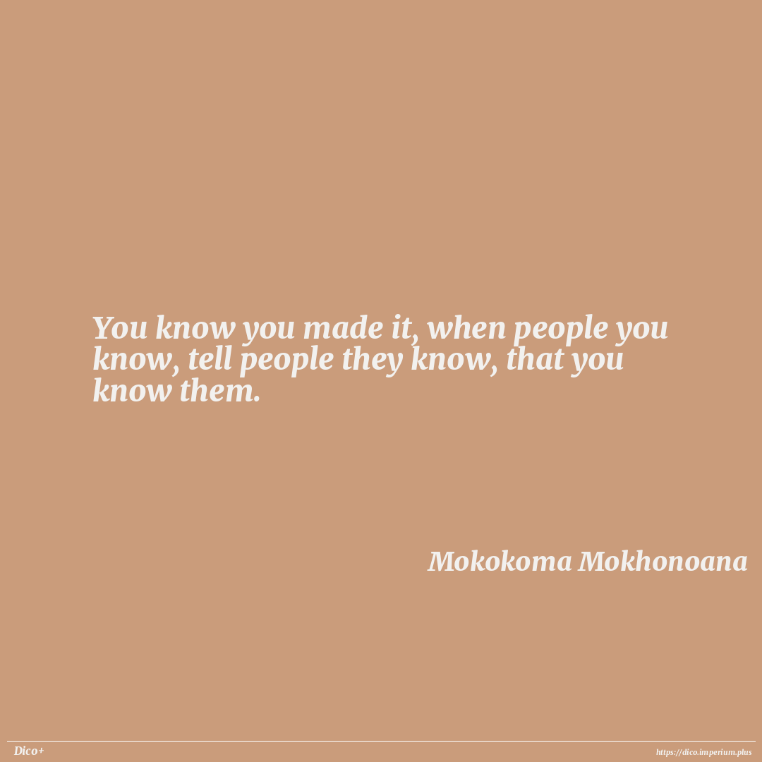 You know you made it, when people you know, tell people they know, that you know them.