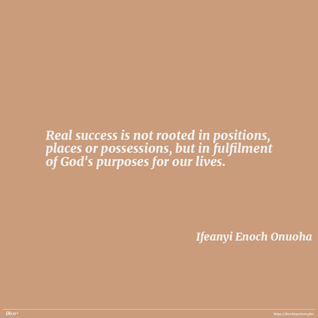 Real success is not rooted in positions, places or possessions, but in fulfilment of God's purposes for our lives.