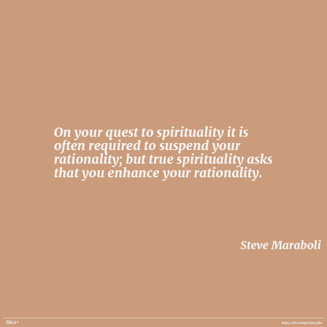 On your quest to spirituality it is often required to suspend your rationality; but true spirituality asks that you enhance your rationality.