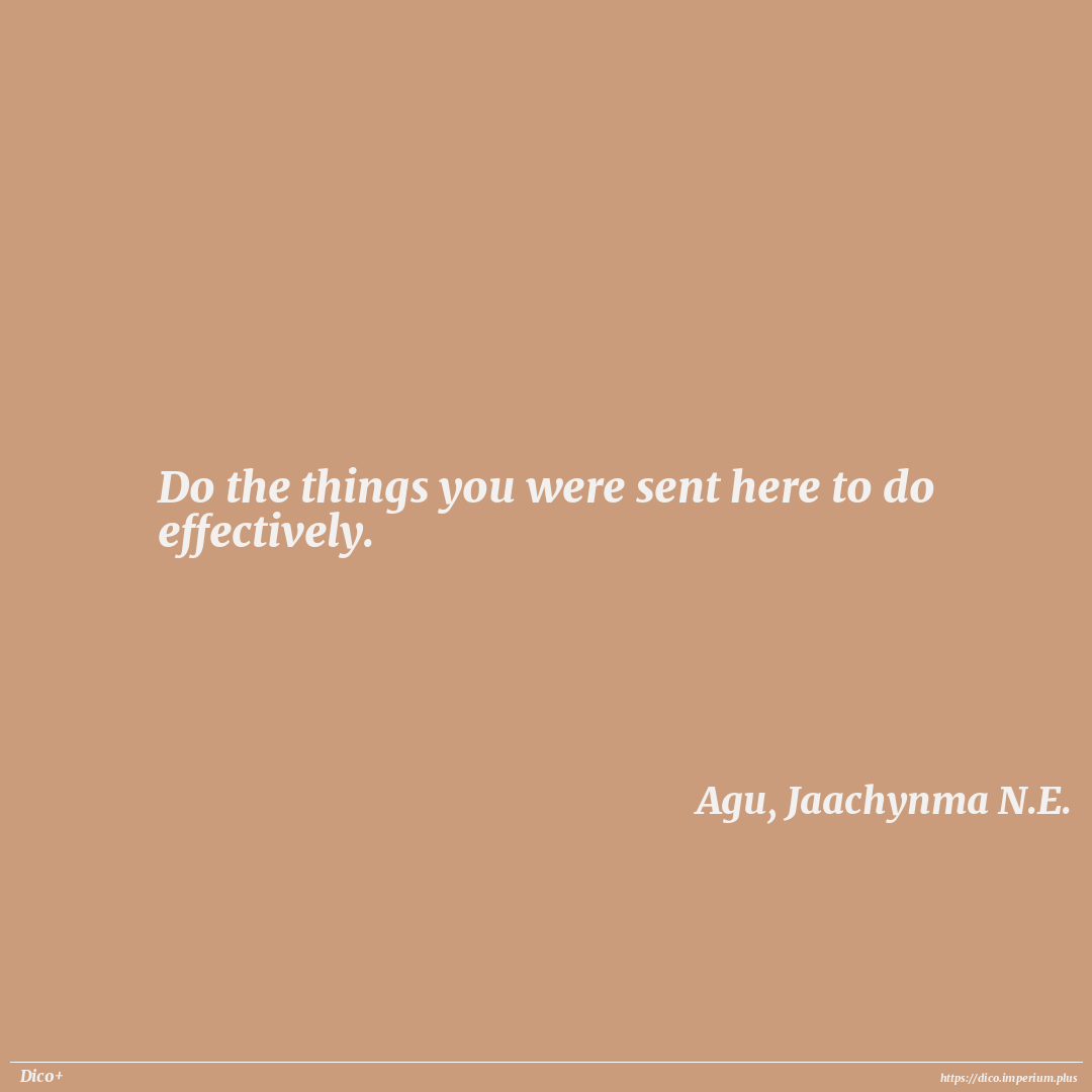 Do the things you were sent here to do effectively.