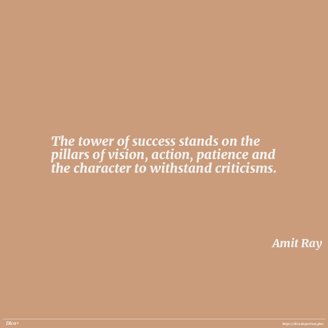The tower of success stands on the pillars of vision, action, patience and the character to withstand criticisms.