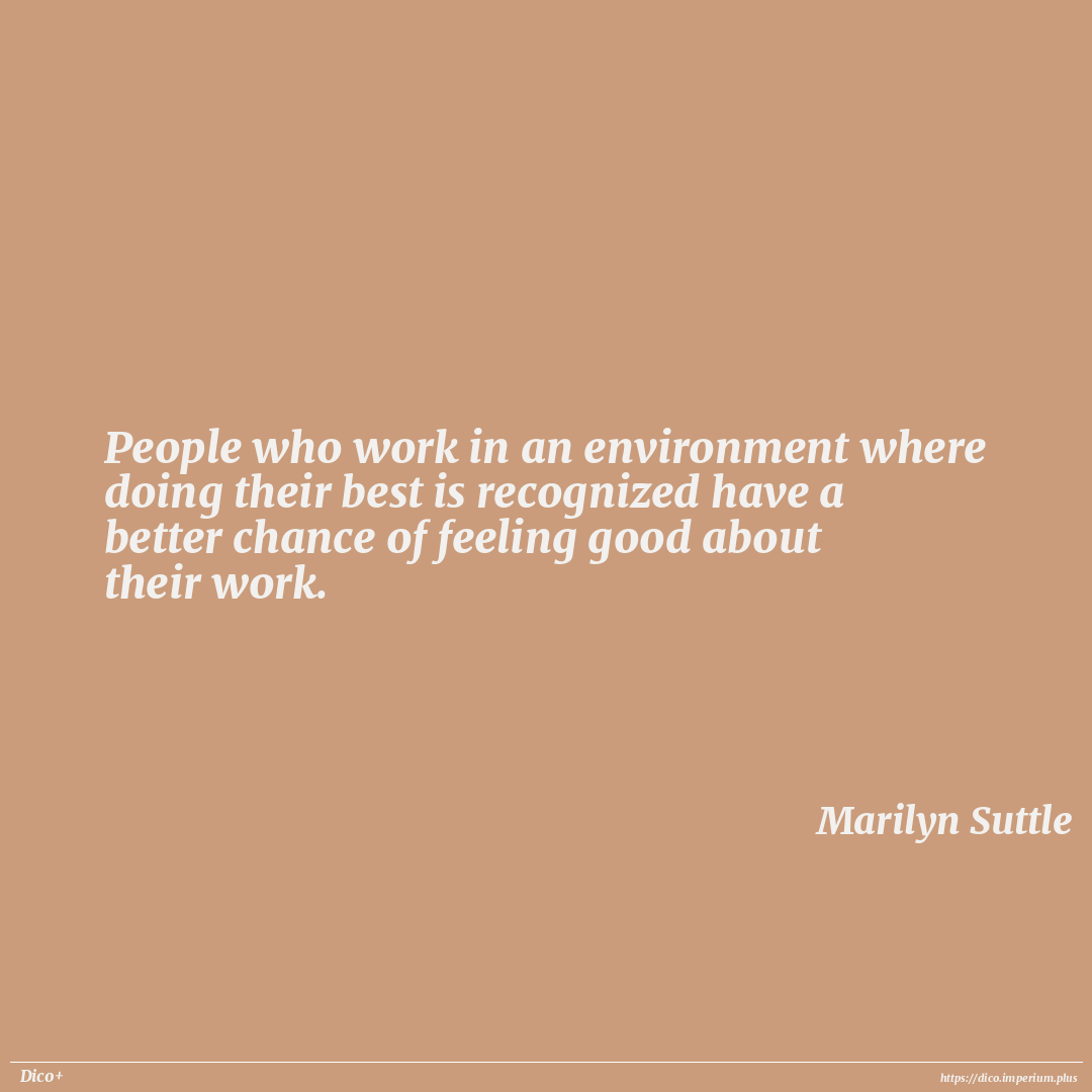 People who work in an environment where doing their best is recognized have a better chance of feeling good about their work.