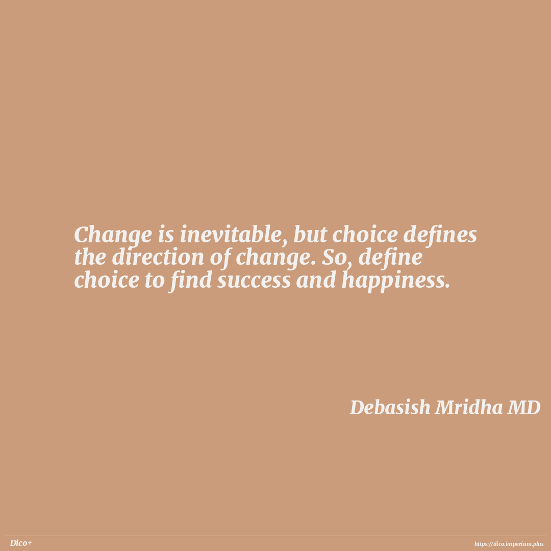 Change is inevitable, but choice defines the direction of change. So, define choice to find success and happiness.