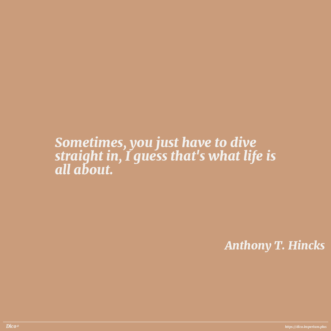 Sometimes, you just have to dive straight in, I guess that's what life is all about.