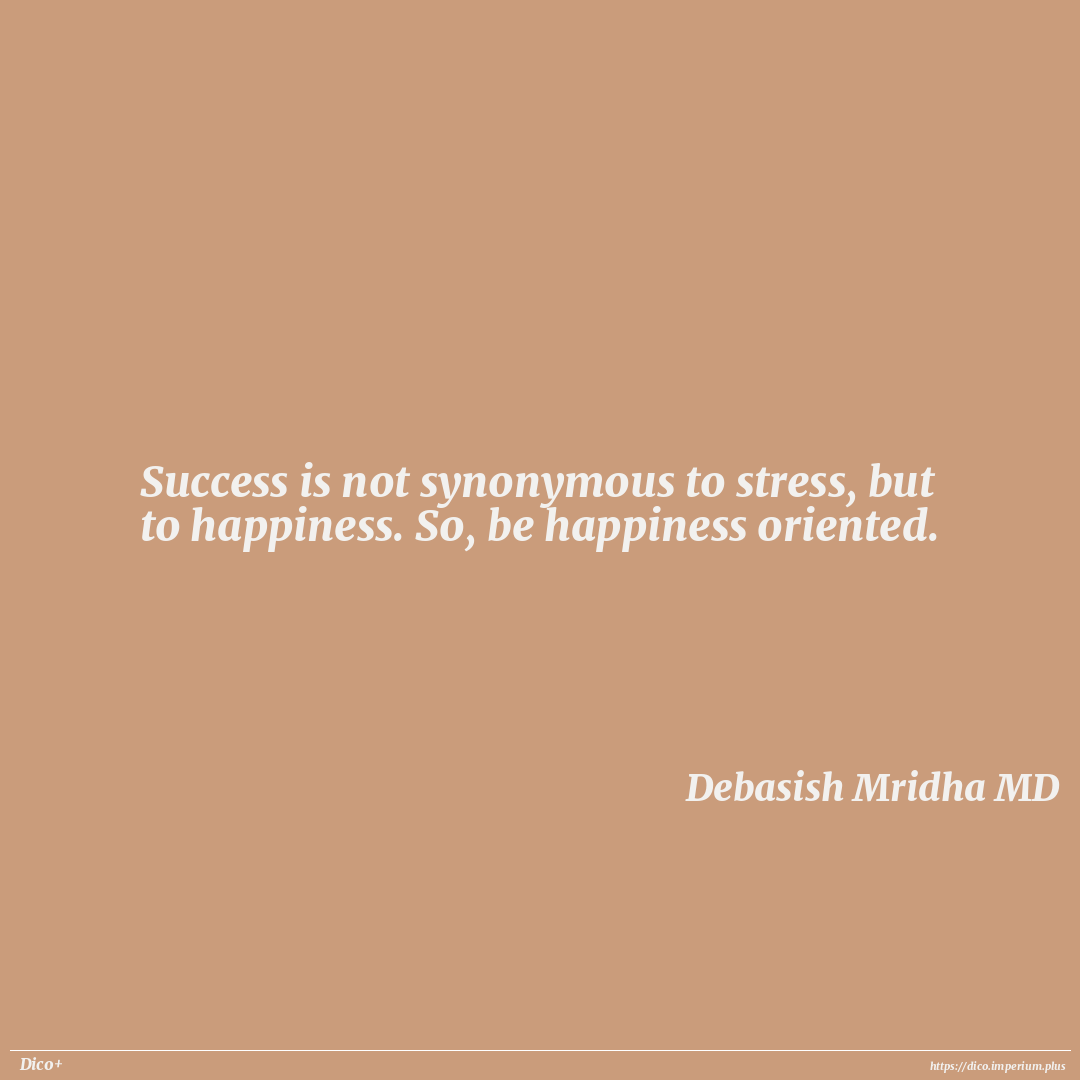 Success is not synonymous to stress, but to happiness. So, be happiness oriented.