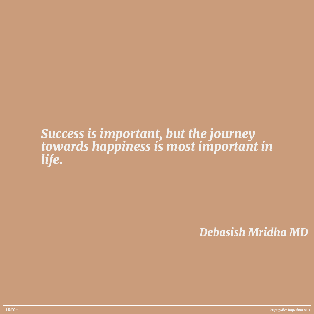 Success is important, but the journey towards happiness is most important in life.
