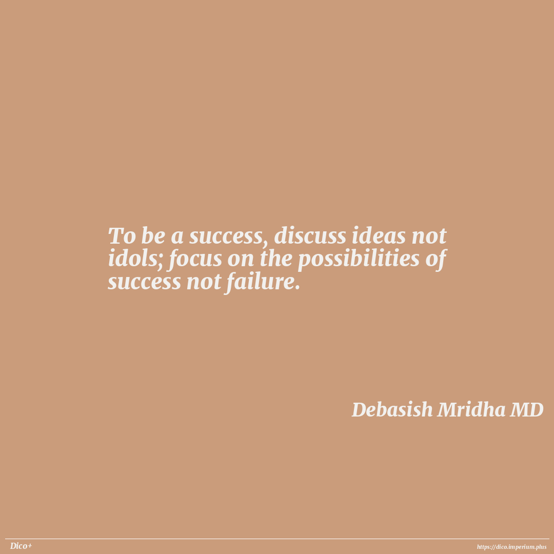 To be a success, discuss ideas not idols; focus on the possibilities of success not failure.
