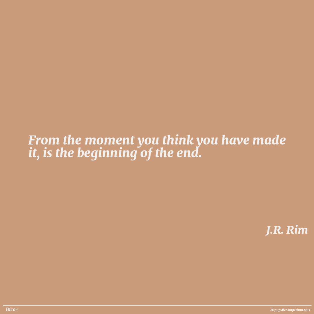 From the moment you think you have made it, is the beginning of the end.