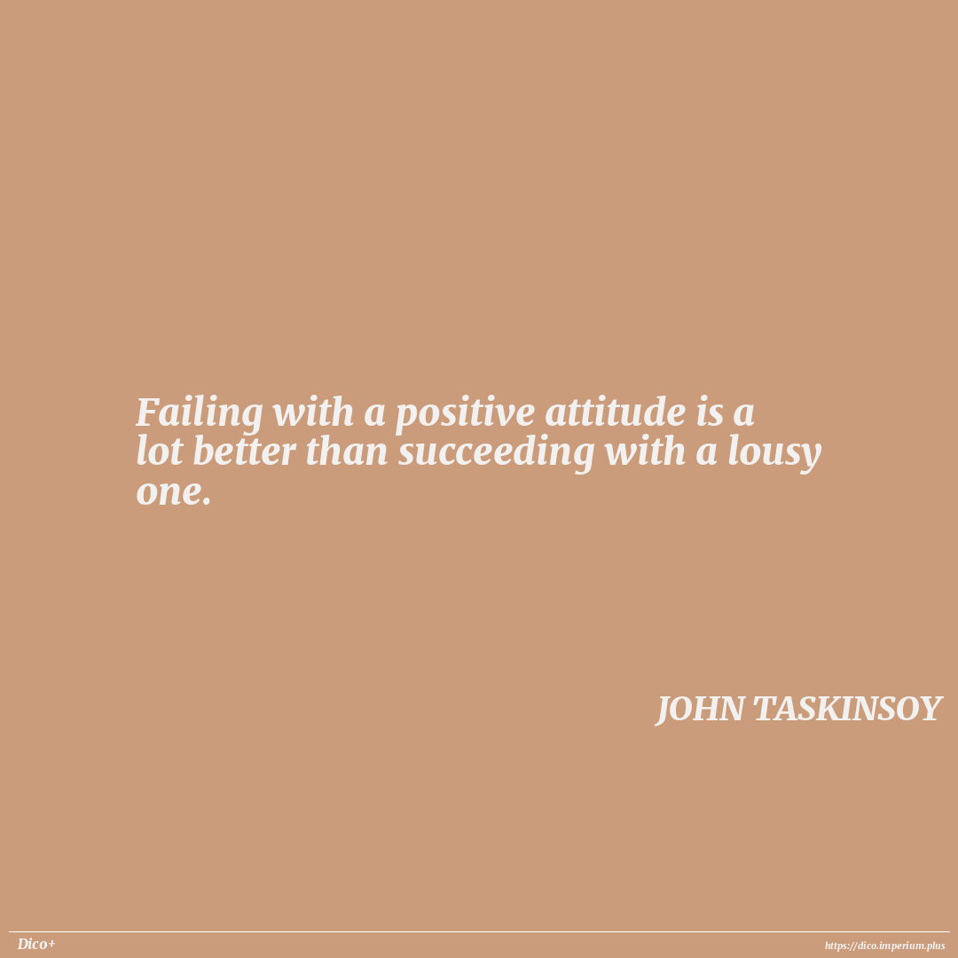 Failing with a positive attitude is a lot better than succeeding with a lousy one.