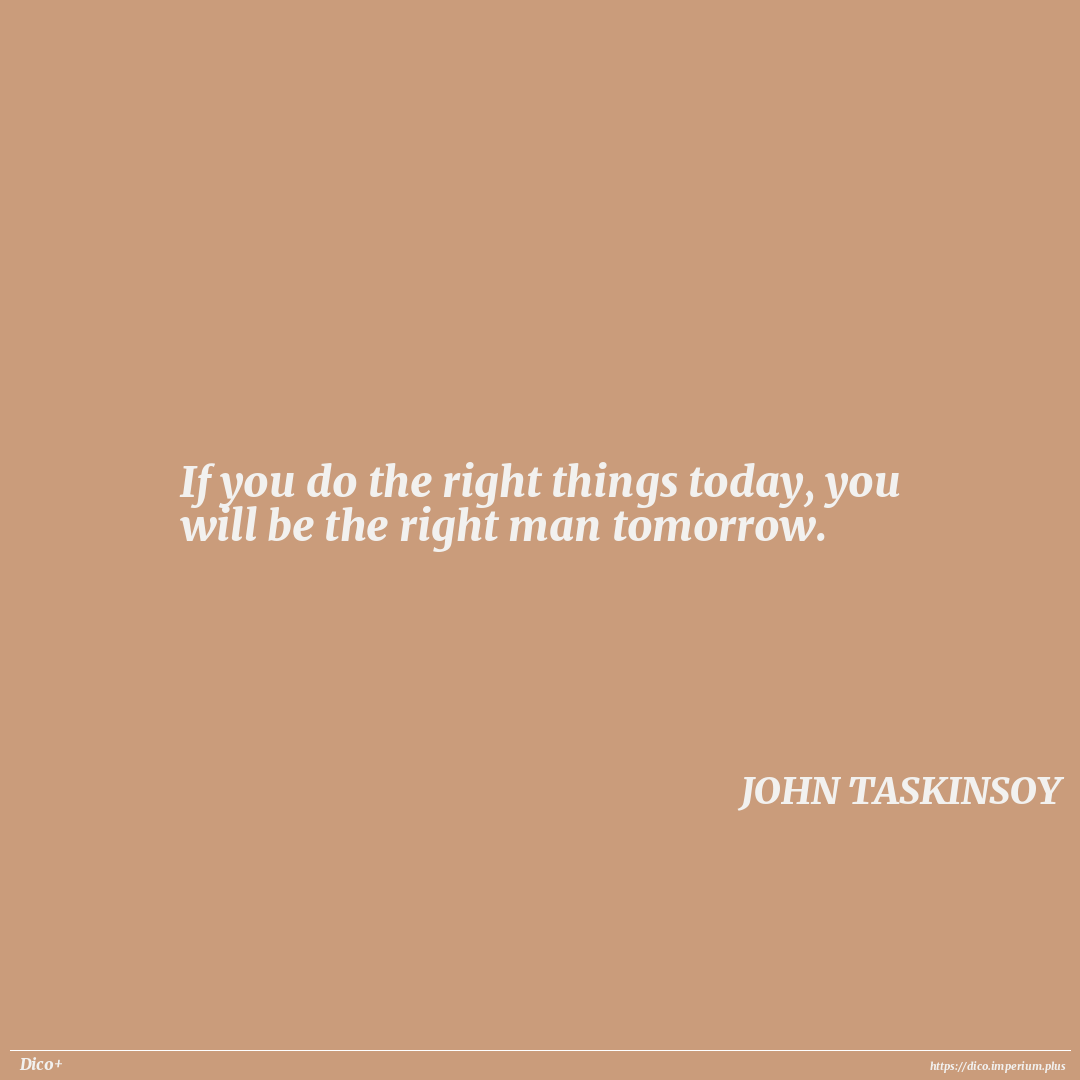 If you do the right things today, you will be the right man tomorrow.