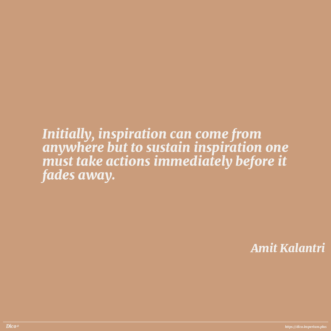 Initially, inspiration can come from anywhere but to sustain inspiration one must take actions immediately before it fades away.