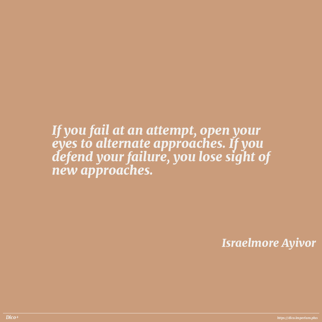 If you fail at an attempt, open your eyes to alternate approaches. If you defend your failure, you lose sight of new approaches.