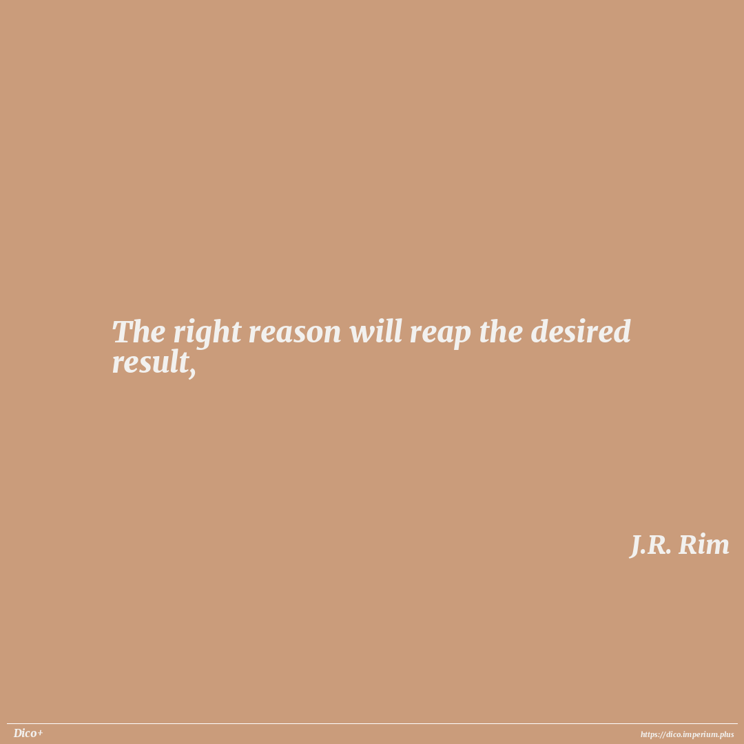 The right reason will reap the desired result,