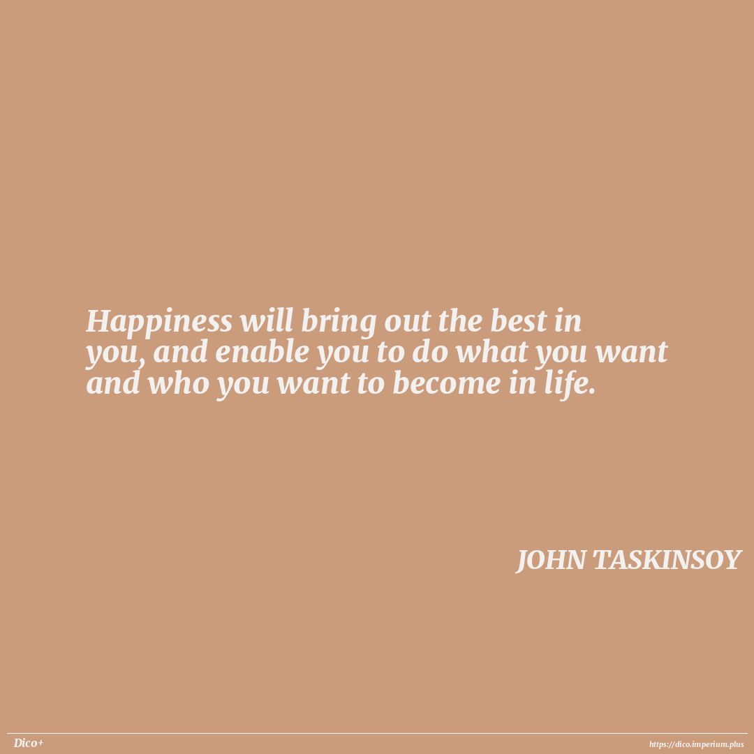 Happiness will bring out the best in you, and enable you to do what you want and who you want to become in life.