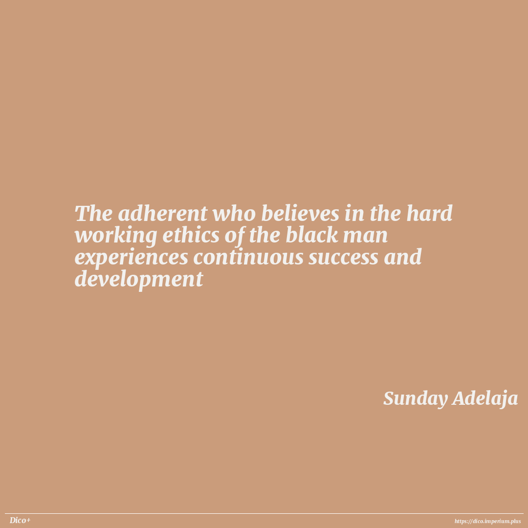 The adherent who believes in the hard working ethics of the black man experiences continuous success and development