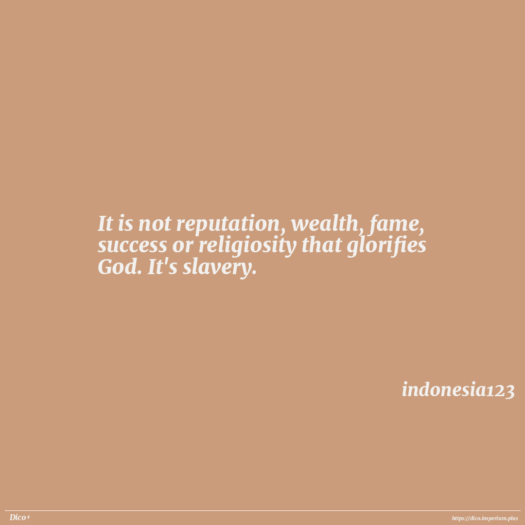 It is not reputation, wealth, fame, success or religiosity that glorifies God. It's slavery.