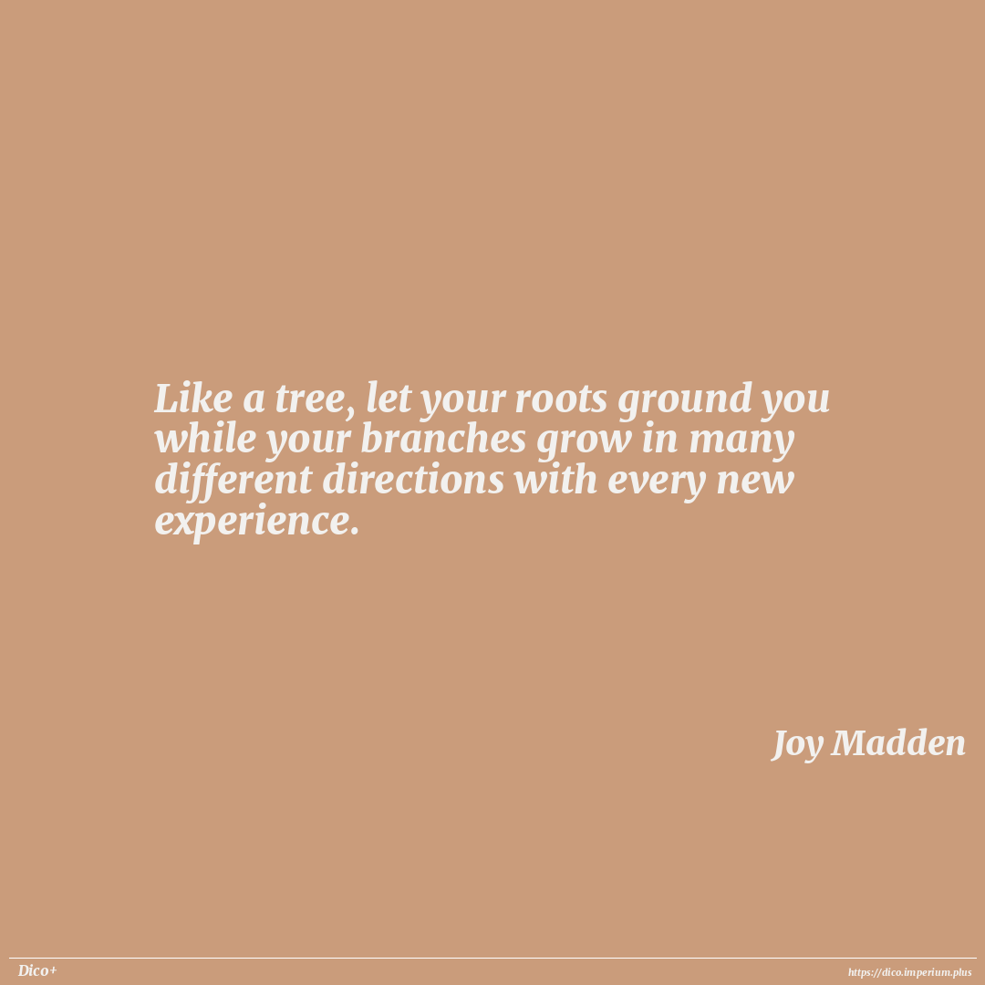 Like a tree, let your roots ground you while your branches grow in many different directions with every new experience.
