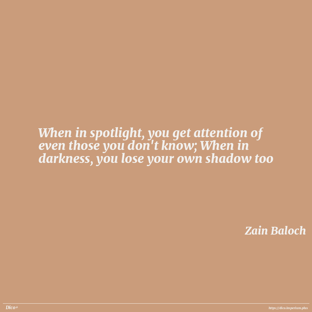 When in spotlight, you get attention of even those you don't know; When you are in darkness, you lose your own shadow too