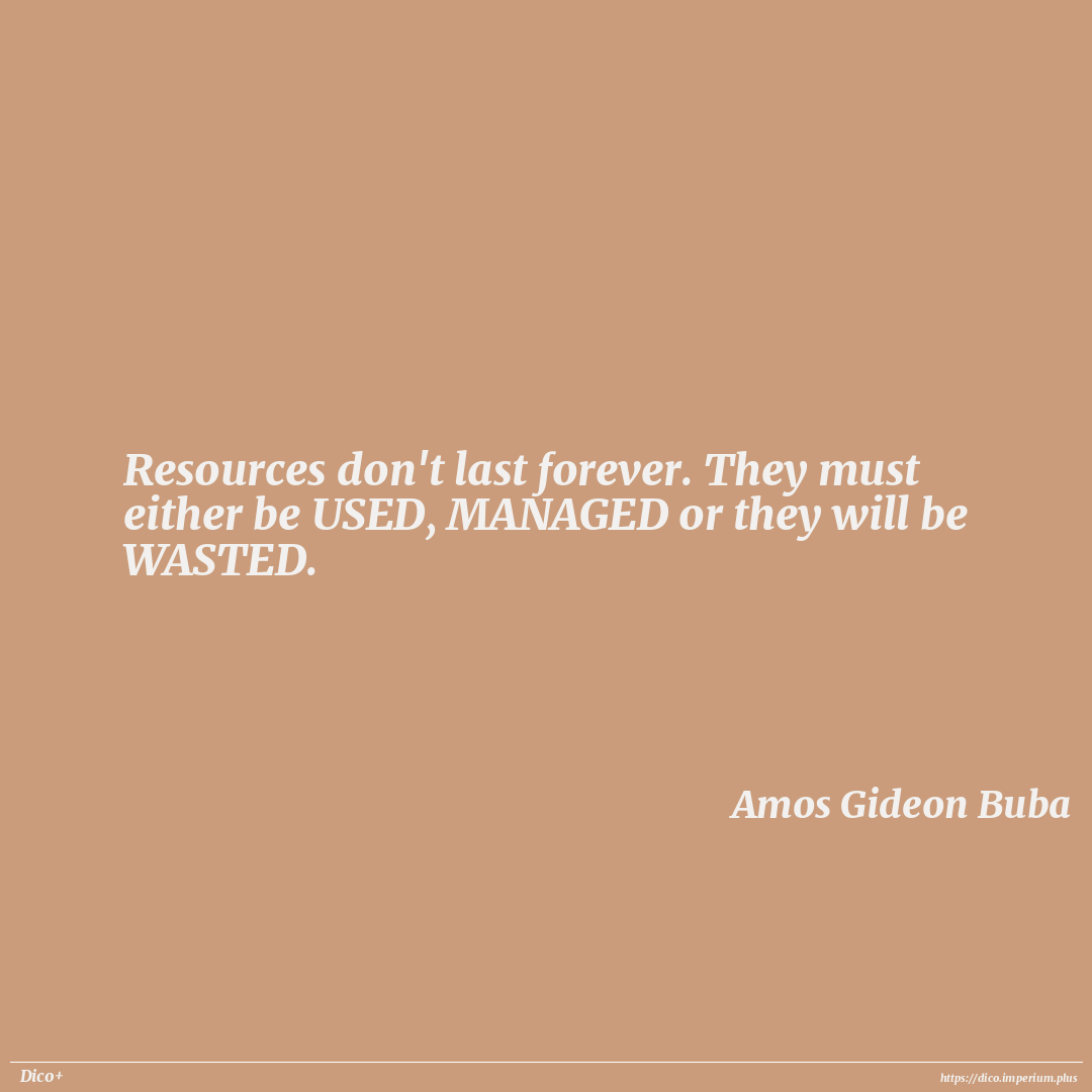 Resources don't last forever. They must either be USED, MANAGED or they will be WASTED.