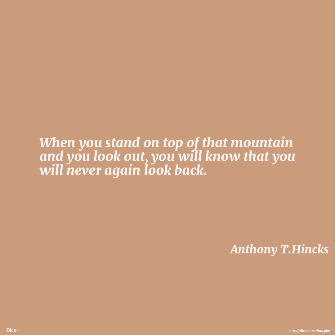 When you stand on top of that mountain and you look out, you will know that you will never again look back.