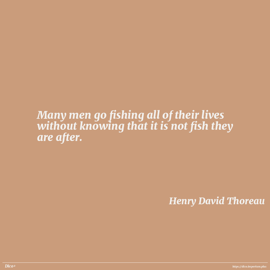 Many men go fishing all of their lives without knowing that it is not fish they are after.
