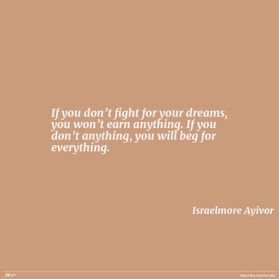 If you don’t fight for your dreams, you won’t earn anything. If you don’t anything, you will beg for everything.
