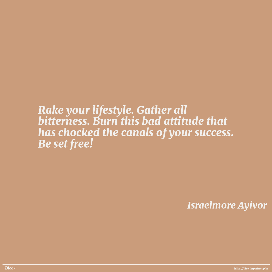 Rake your lifestyle. Gather all bitterness. Burn this bad attitude that has chocked the canals of your success. Be set free!