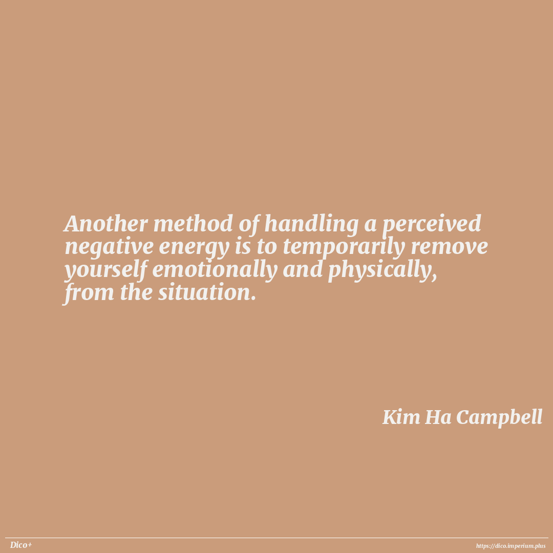 Another method of handling a perceived negative energy is to temporarily remove yourself emotionally and physically, from the situation.