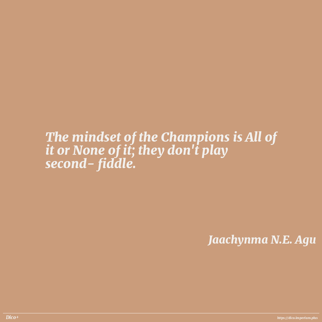 The mindset of the Champions is All of it or None of it; they don't play second- fiddle.