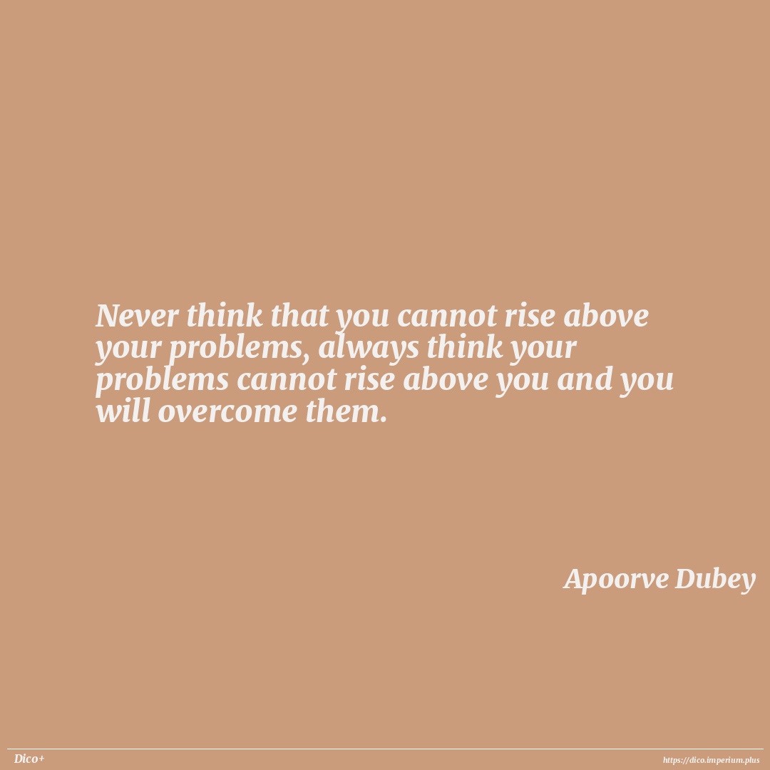 Never think that you cannot rise above your problems, always think your problems cannot rise above you and you will overcome them.
