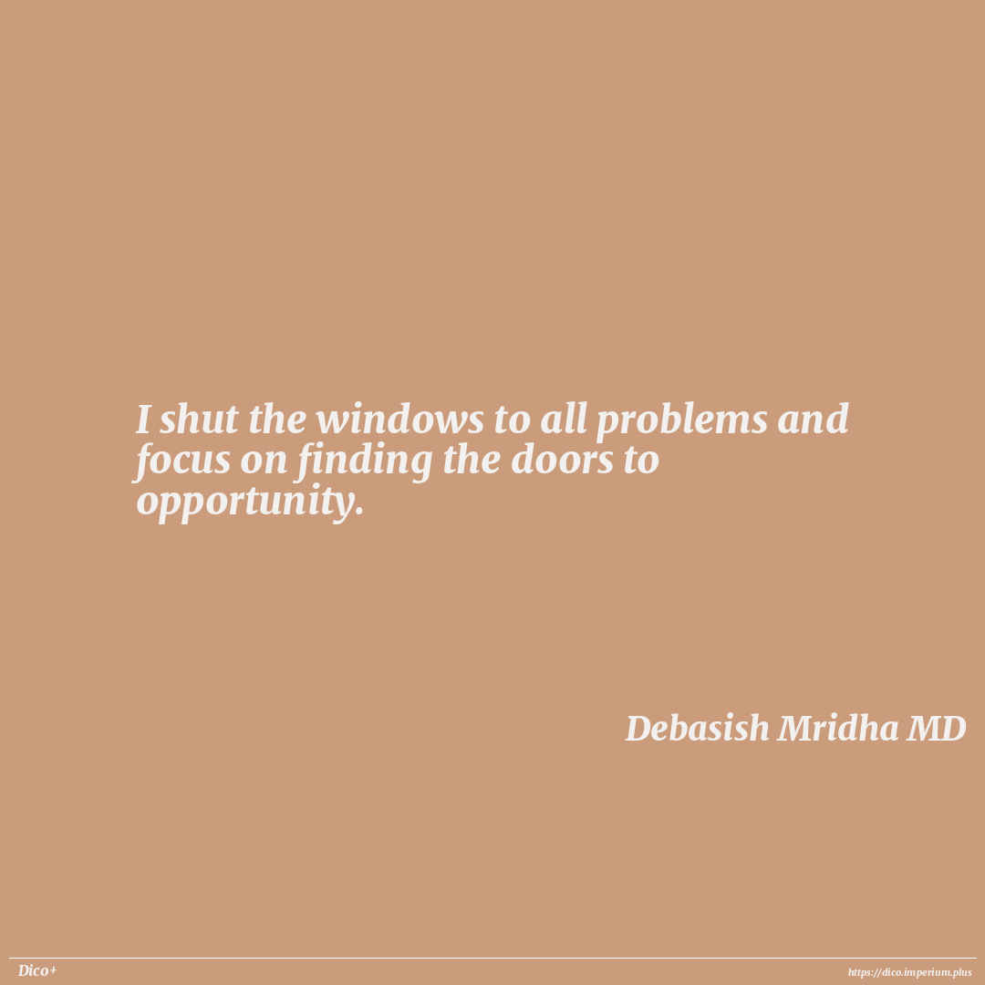 I shut the windows to all problems and focus on finding the doors to opportunity.