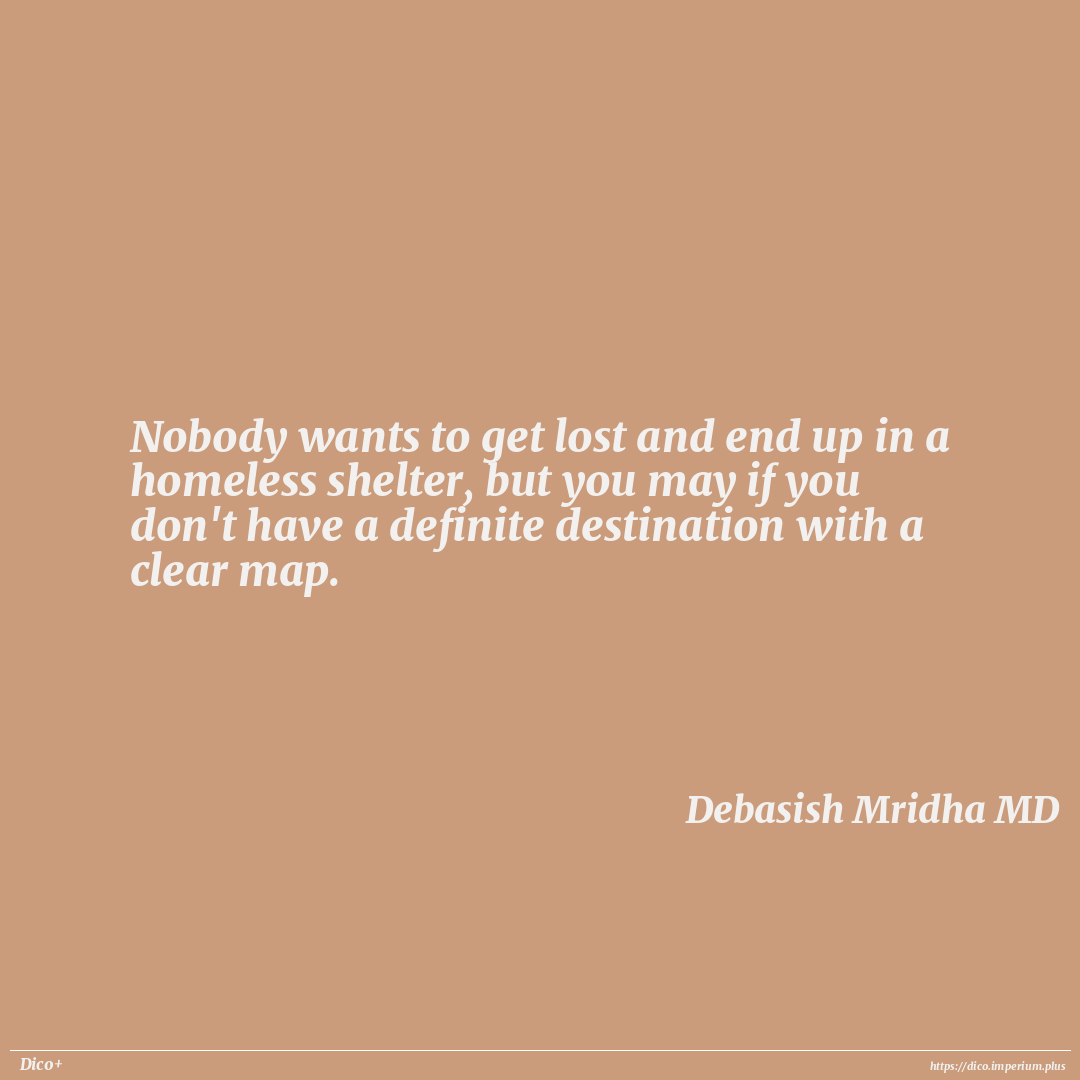 Nobody wants to get lost and end up in a homeless shelter, but you may if you don't have a definite destination with a clear map.