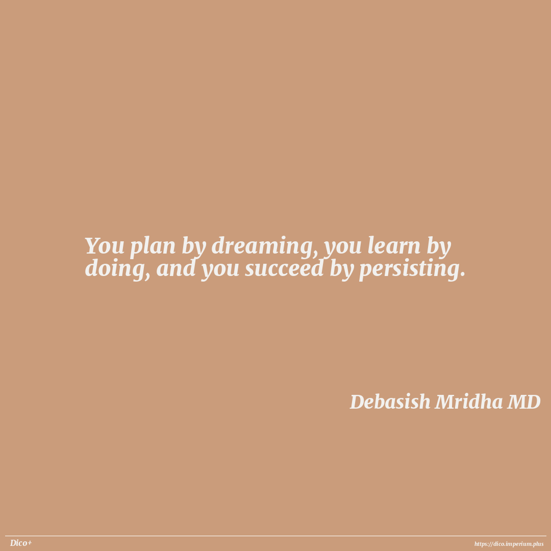 You plan by dreaming, you learn by doing, and you succeed by persisting.