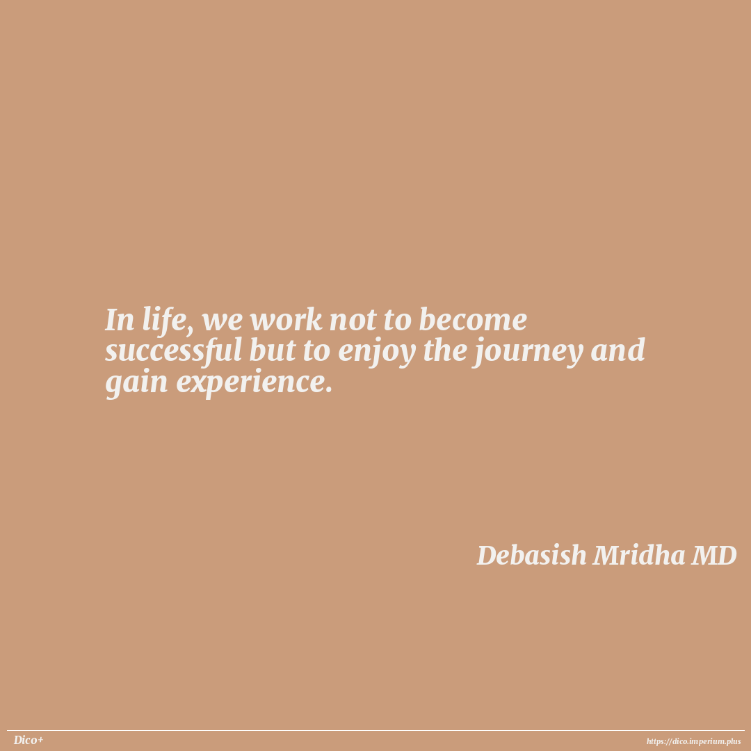 In life, we work not to become successful but to enjoy the journey and gain experience.