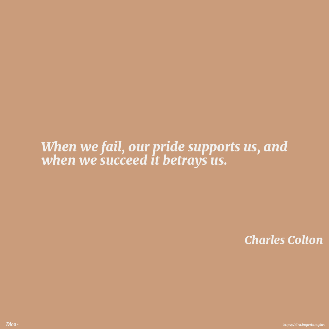 When we fail, our pride supports us, and when we succeed it betrays us.