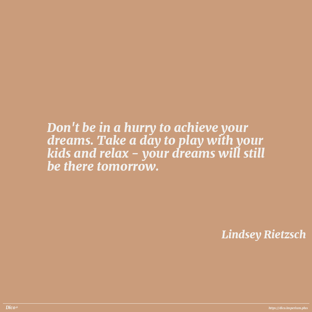 Don't be in a hurry to achieve your dreams. Take a day to play with your kids and relax - your dreams will still be there tomorrow.