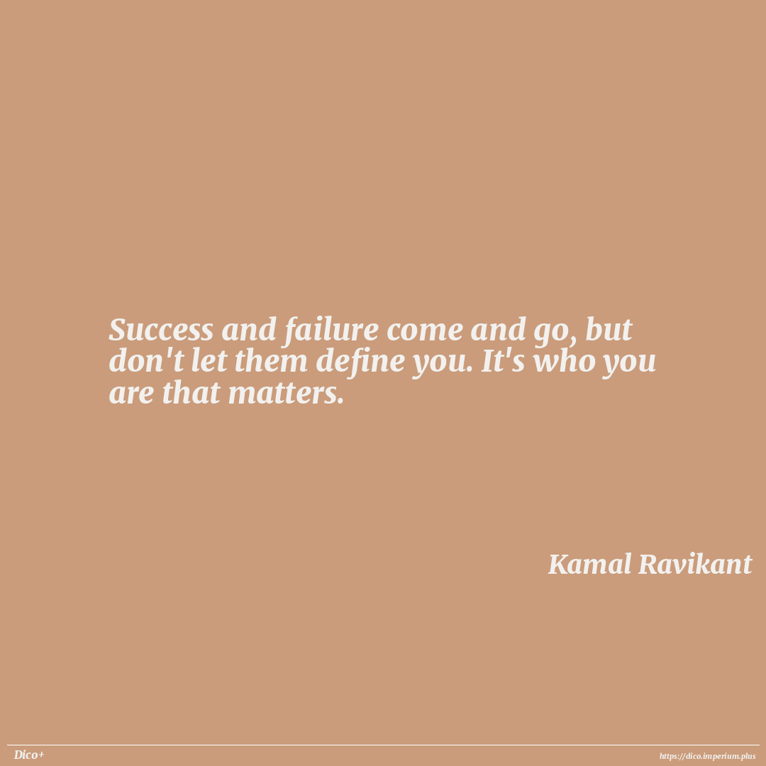 Success and failure come and go, but don't let them define you. It's who you are that matters.