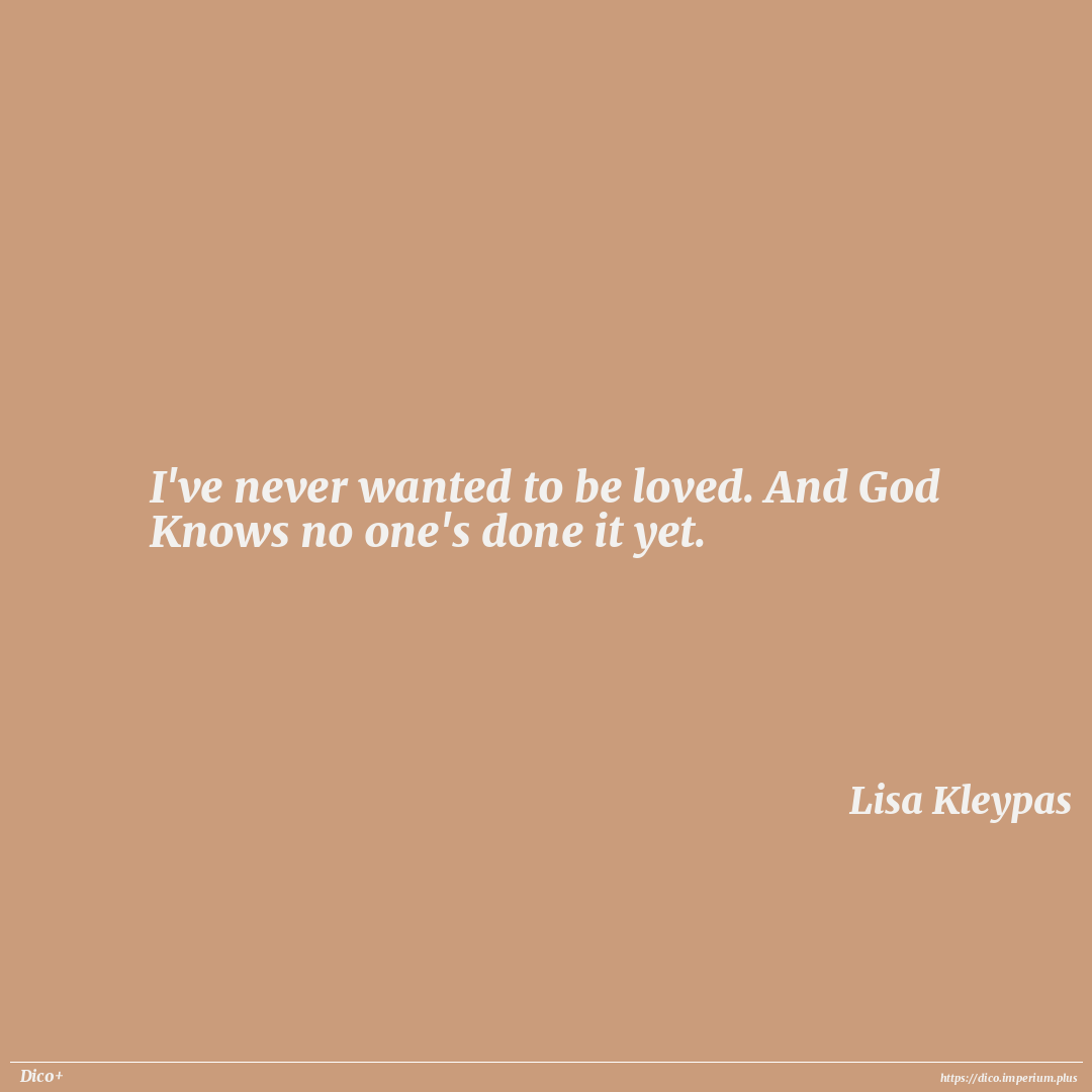 I've never wanted to be loved. And God Knows no one's done it yet.