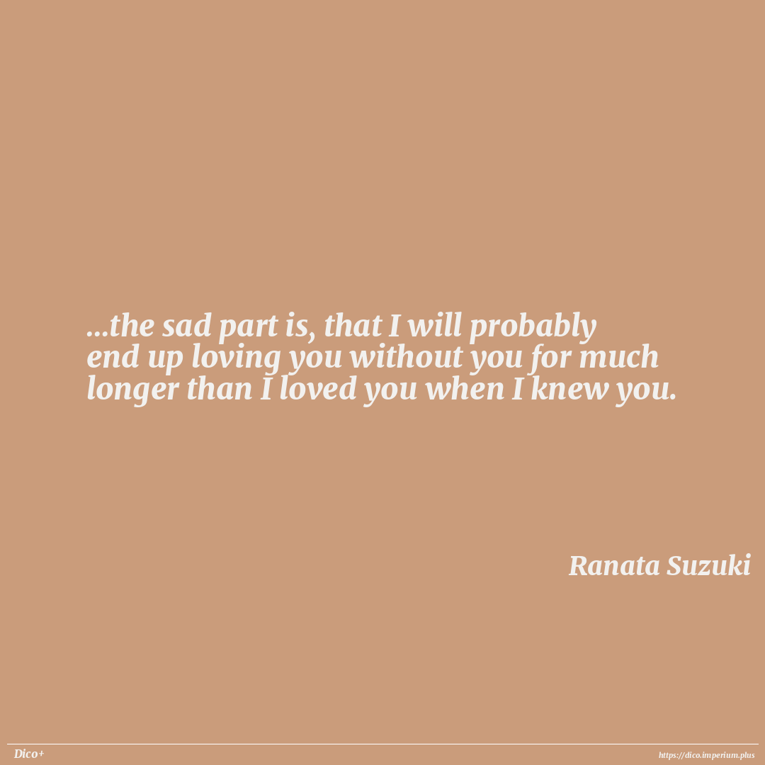 …the sad part is, that I will probably end up loving you without you for much longer than I loved you when I knew you.