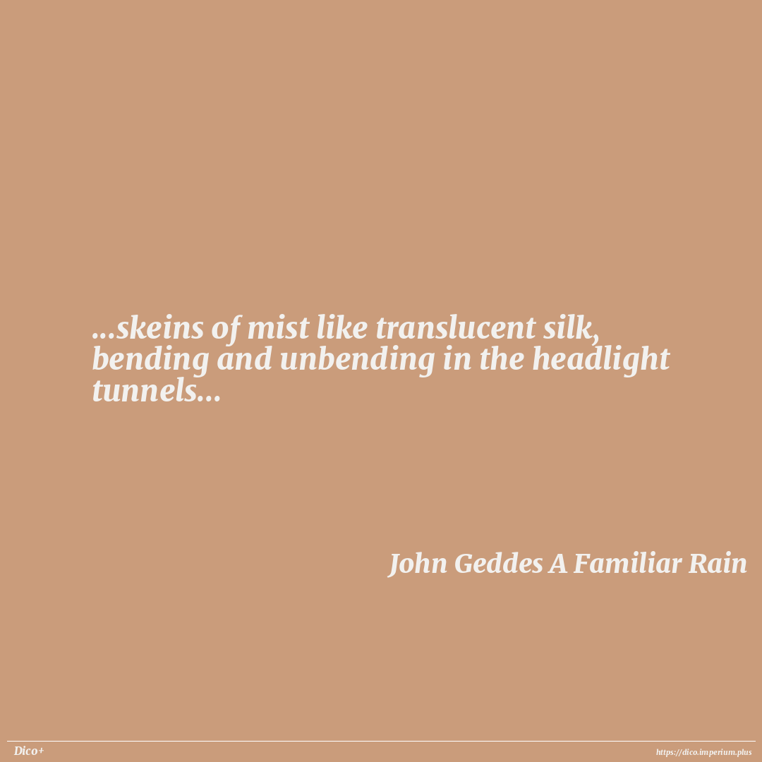 ...skeins of mist like translucent silk, bending and unbending in the headlight tunnels...