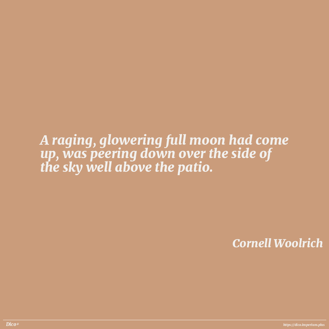 A raging, glowering full moon had come up, was peering down over the side of the sky well above the patio.
