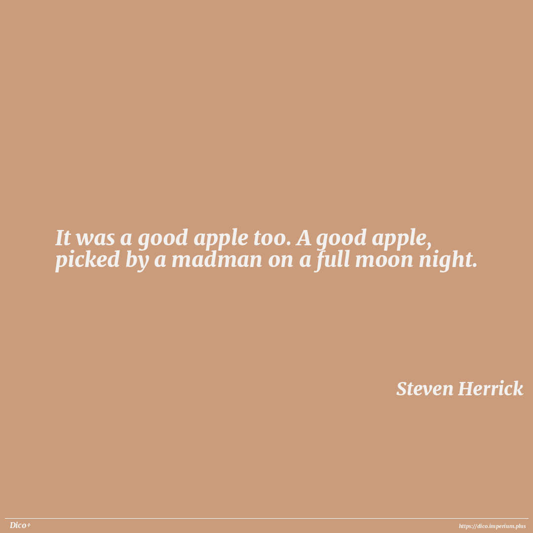 It was a good apple too. A good apple, picked by a madman on a full moon night.