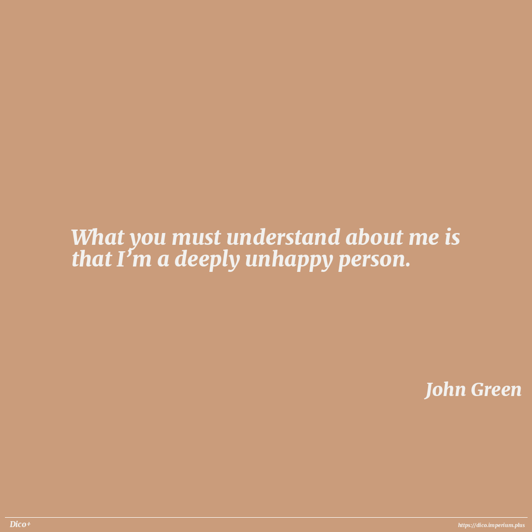 What you must understand about me is that I’m a deeply unhappy person.