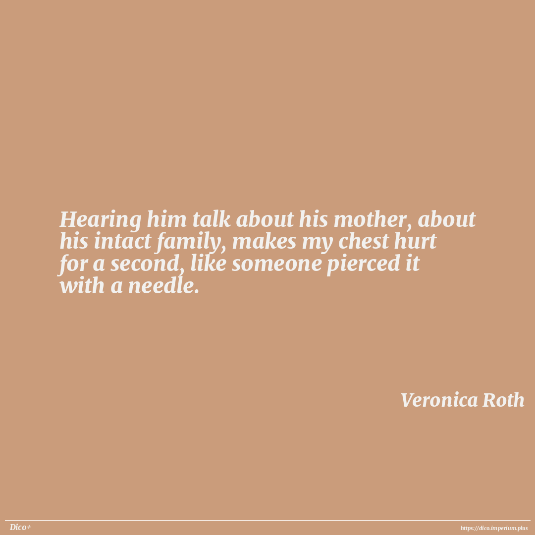 Hearing him talk about his mother, about his intact family, makes my chest hurt for a second, like someone pierced it with a needle.